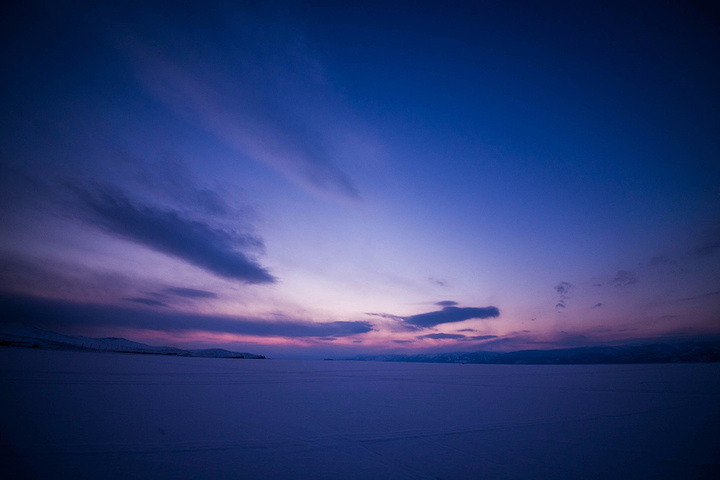 安静的贝加尔湖,冰封的湖面被大雪覆盖,在岸上你都能听见冰互相碰撞, 碎裂的声音,十分沉闷, 十分骇人,接下来发生的事情,现在想起来还真的后怕 天色已经黄昏了,但初到奥利红的兴奋劲促使我一直往湖心走,然后用就架上三脚架开始拍摄延时摄影,懂的人都知道, 拍延时摄影的时间是很长的,要在同一个地点呆上很久的时间. 然后我就等啊等, 1个小时后终于拍完了,等我反应过来的时候天已经完全黑了,然后心里顿时觉得不妙,我已经离岸边有几公里了,这特么得赶紧回去才行啊,掏出手机一看,尼玛! 手机在这样的低温下冻没电了!不知道各位能不能想象当时的环境,本来晴朗的天空被厚厚的云层盖住, 就连那么一点点星光都没了,周围一片漆黑,我拿拍婚礼用的补光灯开到最亮,顶多只能照亮前方30米的范围只有白茫茫的雪,30米后就漆黑一片,因为此刻我在的位置离村庄太远,所以在夜里的贝加尔湖面上是没有一丁点光源的,冰上有的地方没有被雪全部盖住,所以来的时候的脚印也是不连贯的,这种环境下迷路是肯定的了,手机没有电,贝加尔湖太大,空旷的周围又找不到任何参照物可以供我辨认方向,我就这样好像被笼罩在一片巨大的未知黑暗空间当中一样,我接着凭感觉往回走了大概30-40分钟,但还是没有看到岸边迹象。 周围很静,除了西伯利亚呼啸的寒风声,就只能听见自己心跳的声音,在一个陌生的国家,漆黑的环境下失去方向,脚下还时不时传来冰裂的声音,恐惧开始升上心头,接着我又走了十几分钟,到了一片雪少一些一些的冰层上,想看看手机能不能有一丝余电开机,我才刚停下掏出手机来,突然!脚底下就传来了噼噼啪啪密集的冰裂声!我勒个去!恐惧值瞬间爆表有木有啊!真吓屎宝宝了啊!!!!我赶紧蹲下气都不敢出,虽然我知道蹲下并没有什么用,重量也不会减少,但我已经没有办法了,心狂跳不止!没有体验过那样的环境真的是无法体会这种恐惧的! 这要真冰裂掉下去,可就真再也上不来了
