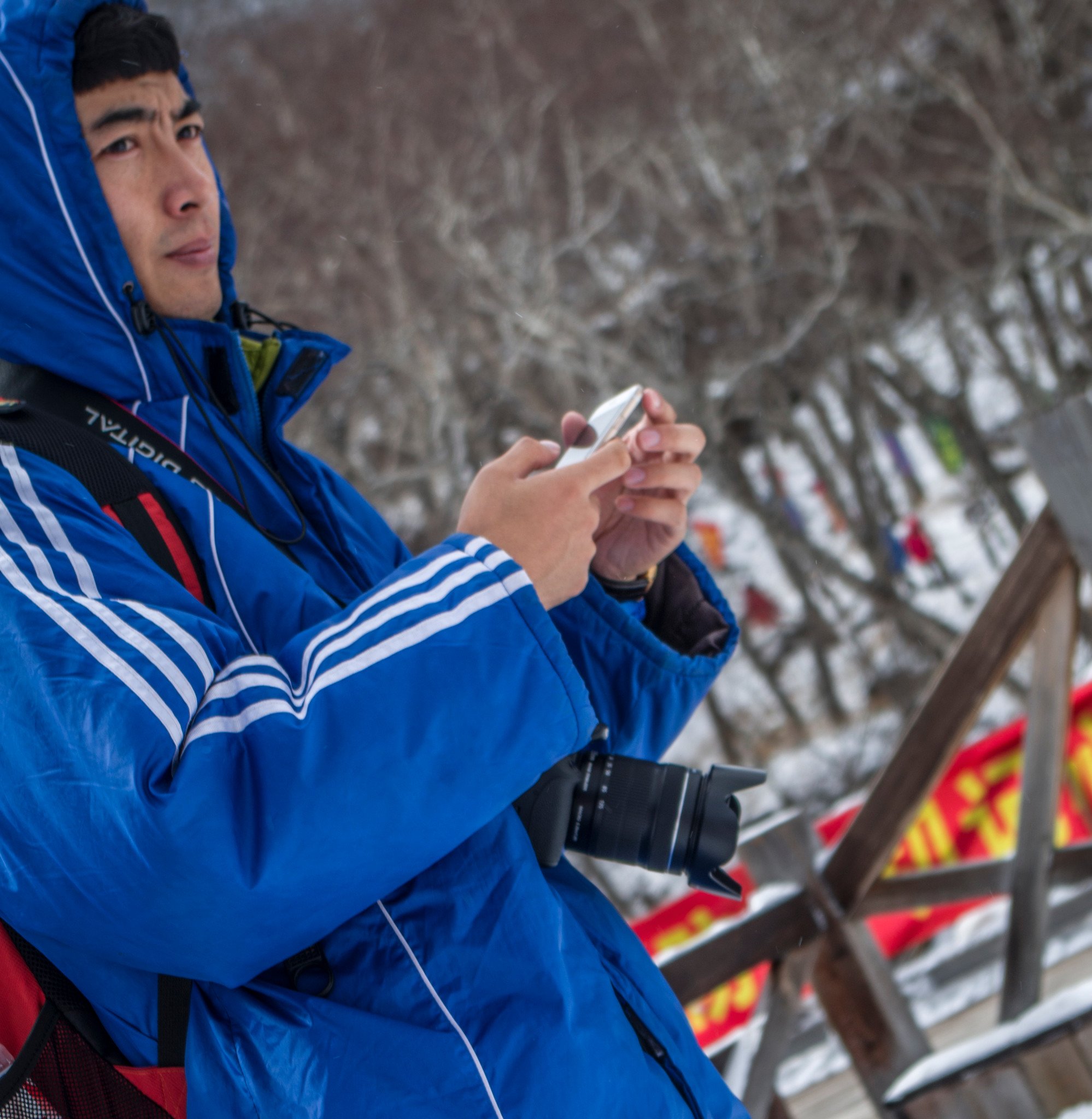 鼻子冻得通红,手机发微信的时候,手套脱了打了几个字,小拇指已经没知觉了,默默的待回手套不敢再放肆了。基本我脸颊也不太自然,一边说话一边鼻涕乱飞。