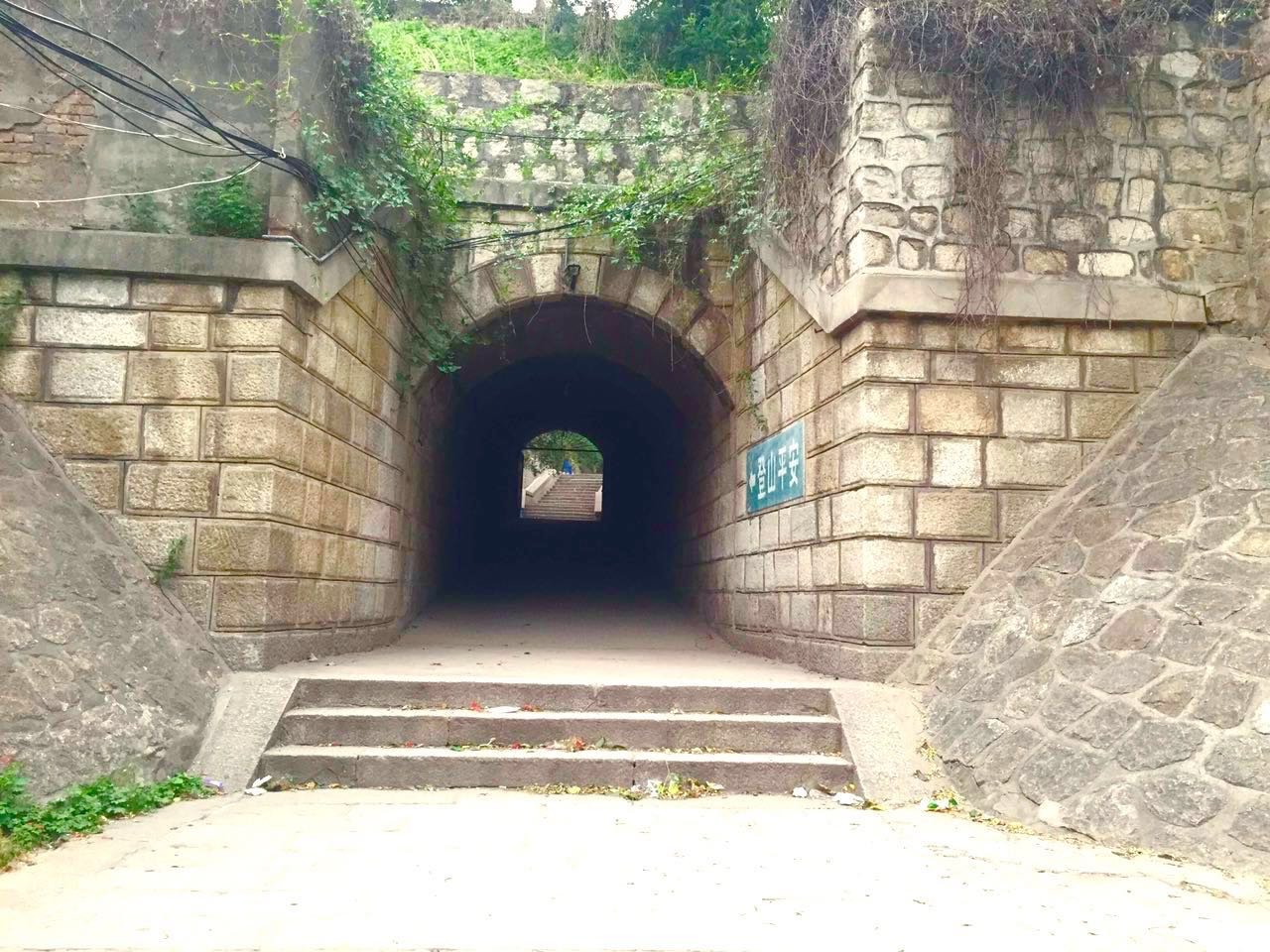 玉泉院不算太大,和大学校园差不多,走走停停就来到一个拱形涵洞,旁边写着“登山平安”。此时,就正式开始了华山徒步线。如果之前没买华山门票,经过这个涵洞,就会看到远处的LED显示屏,那里就是华山徒步线的检票口,旁边还有售票口,方便没去游客中心的人在此买票。