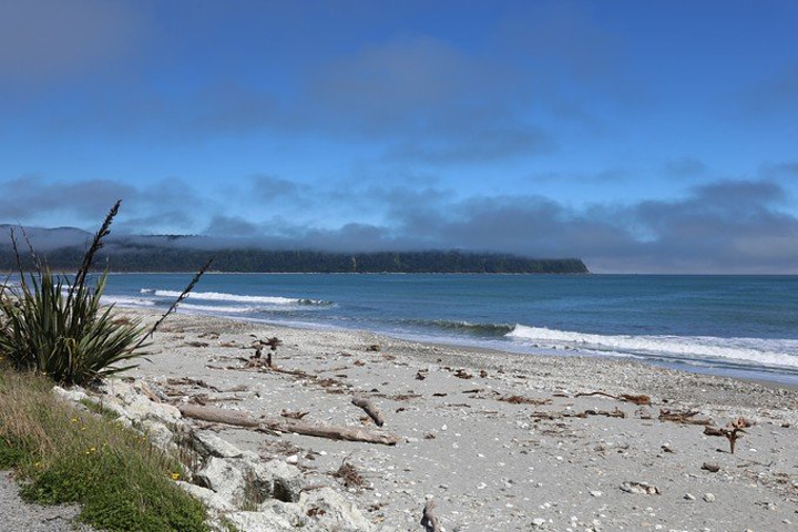 下面一段路程,如果需要拍照,坐在左边副驾驶位置即可。 首先经过的是新西兰十大海滩之一——Blues Bay 布鲁斯湾