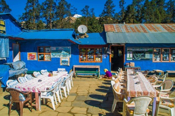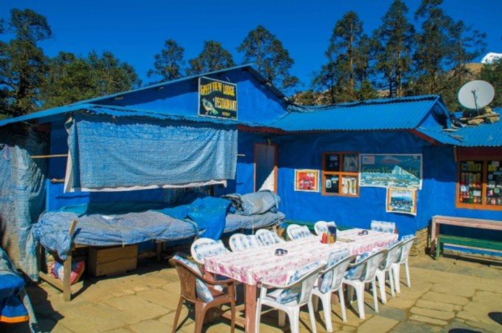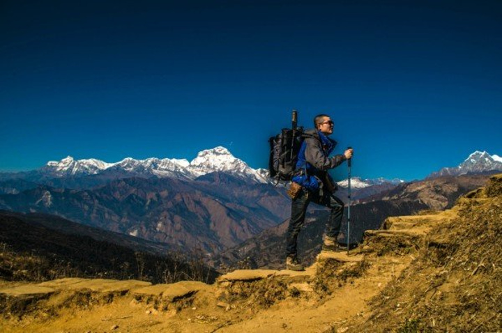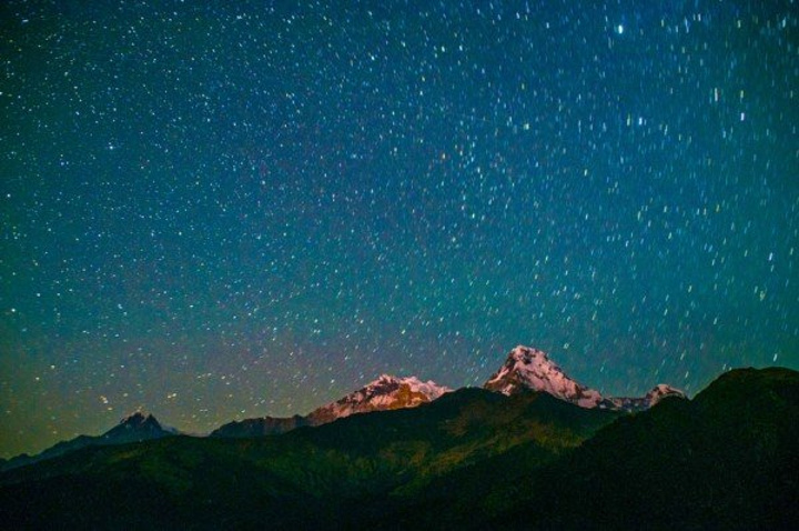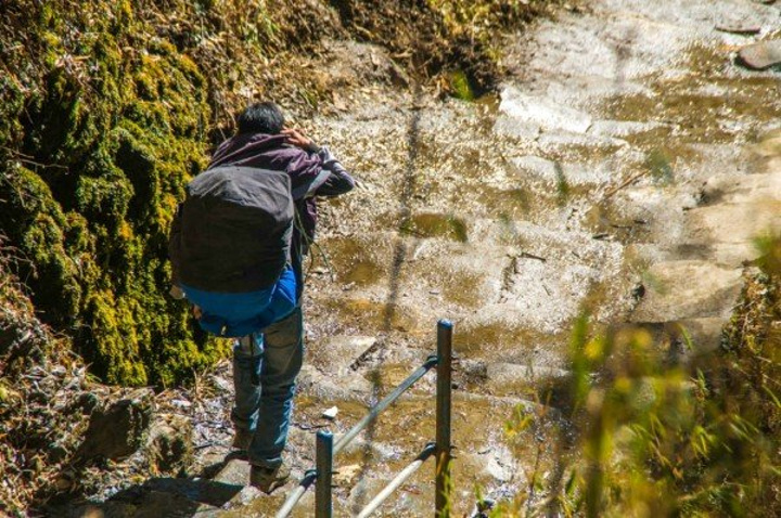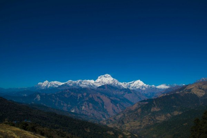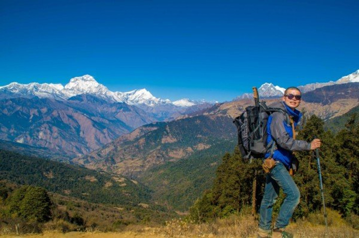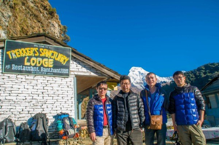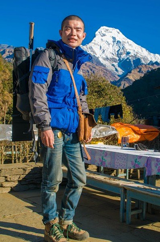 昨天有过多的巧合,一是遇见了天津的三位大哥,就像他们说的,在加都离别后他们就有预感我们还会再见,我的出现都是神一般,头次遇见是在去猴庙的路上,我们从两个方向去同一地方,由于不识路,在一个三岔口碰到,剩下一条路就是去猴庙的,那今早再次别离,下一次碰见是否会在博卡拉的天空,在滑翔伞上打个招呼,怎么你也在? 另一个巧合是昨晚他们在室内聊天,北京姐和主人家的妹妹坐一起,我晕头晕脑的走了进去,见人己坐满,挤到她俩旁,刚落坐,他们一起大笑起来,我只想说,我被坑了。原来他们正和主人家聊天,而主人的妹妹单身着,又喜欢中国男人,对面几位都是已婚男,于是,我点了一杯热柠檬把自己给卖了。 清早,相互道别,有缘再见,一个人,出发去Poon hill,三个小时。 今天只需走个三小时,便不急不慢,经过峡谷,小河淌水,寒冰三尺,一次次勾起了拍照的欲望,什么无聊,什么辛苦全然消失,尽管一路上坡,但半随着雪山也无压力。直到上到上顶,一面雪山,一面群山尽在脚下,可惜,无人来给我拍照,多么浪费,终于等到有人来了,一个看起来凶巴巴的背夫,放了行李就抽烟,不敢冒昧,正准备下山,发现一个角度,一个面对雪山的梯子,真不想浪费这般好角度,大胆对他说:"EXcuse me, can you help me take a Photo?" 他立即灭了烟,热情的跳下来,问我怎么拍,接着各种不熟悉的摆弄相机,心想,完了,找了个不会拍的,于是,我走过去,按我心仪的角度拍了张空景,然后告诉他按快门,再跑过去,摆Poss,他拍完之后示意要再来,接连换了几个Poss,当我看到照片时,震惊了,还有拉近焦距的照片,竖起姆指对他说牛逼。他让我和他一起下山,路上帮我订好了客栈,在大门前给我拍照,再次让我另眼相看,他的角度是天生的吗?那光线,构图都绝非到此一游,这个朋友我交定了,乐呵乐呵的一起到客栈。 这家客栈面对雪山,也是北京姐推荐的,点了好几样吃的,开始享受,他们抬出一块木板,架在凳子上,开始玩起他们的游戏(介绍) 洗澡 吃饭(750元)奢侈 拍星空 认识几个走了EBc的尼泊尔姑娘 热情的向导。(服务) 上面有几句是概括的话,当时想睡觉了,没有及时记录,所以,现在只能慢慢回忆当时发生了什么啦 先来秀一下我的太阳能