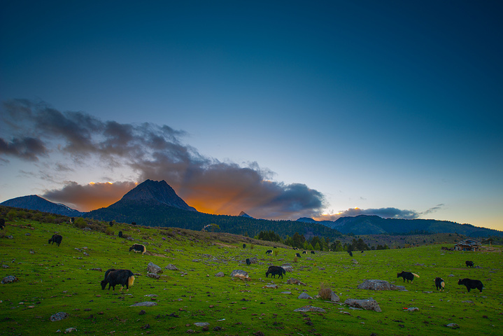 上了高原要过夜的孩子们,真的必备暖宝宝,记住了吗!必备!最好多带一些,比带衣服强多了。 吃过了唯一的热食,小鸟说要去拍红色的云,我们就出去坐在牛棚外的木板上等晚霞