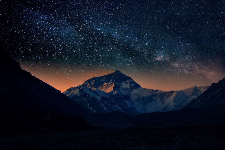 PS:夜晚的珠峰一直笼罩在厚厚的云层中,没办法拍下星空下的珠峰是我最大的遗憾。【这是前一张日出时的珠峰+朋友在呼伦贝尔拍的星空合成的】,以此慰借自己👼😜