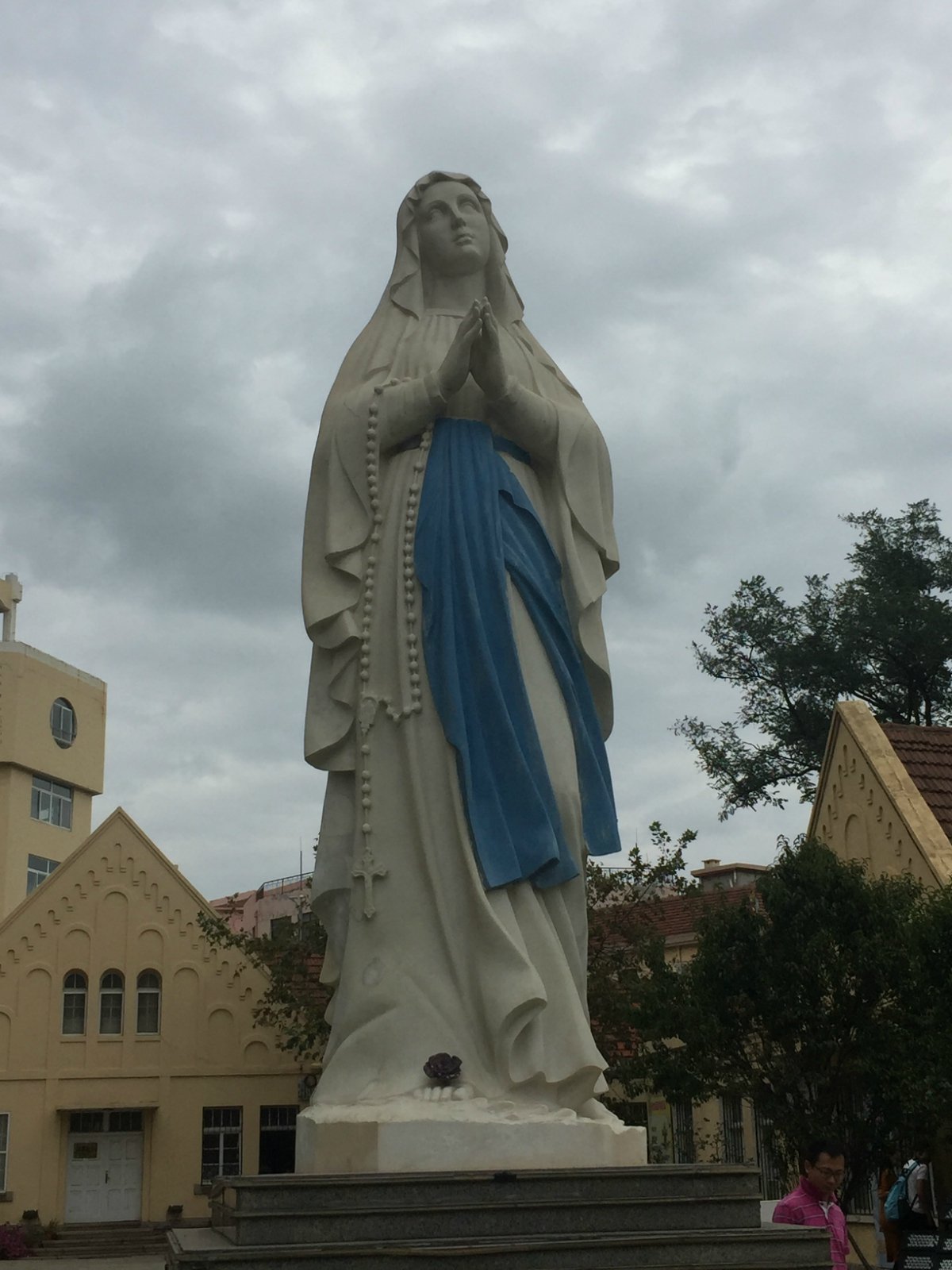 闻说它是依据哥德式和罗马式建筑风格而设计,和我们广州的石室大教堂感觉差不多,沿着中山路,走大约300多米右转有个小上坡的柏油马路——曲阜路,就能到达,远远除了能看到2个高高的钟楼外,不大的广场上或站或蹲或坐的,已经有好几十对情侣在拍结婚照了,一不小心真的会成了别人的“风景”,就因为拍结婚照的人超级无敌多,导致最后我的教堂相片全部都往高了拍,这。。。也算个奇特经验吧/(ㄒoㄒ)/