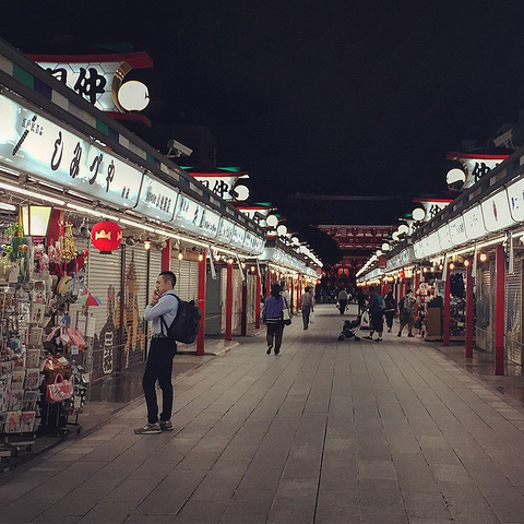 逛完冰川神社就回东京了,这次的川越也没有逛很久,也有很多著名景点没有去逛…… 其实这样也蛮郁闷的……以后还来不来呢……来吧,又已经来过,不来吧,又很多地方还没走到,估计要隔个几年再来 今晚计划去吃一家在攻略书上很有名的天妇罗店,在浅草寺附近的。 走过仲见世商业街,第一次看到如此冷清的仲见世商业街啊!平时白天游客可是挤得水泄不通,谁来过谁知道!! 由于之前已经参观过两次了,当时肚子又已经很饿了,于是这次就没有进去浅草寺参观了,后来略后悔,是不是应该进去瞧一瞧晚上的浅草寺是怎样的呢。