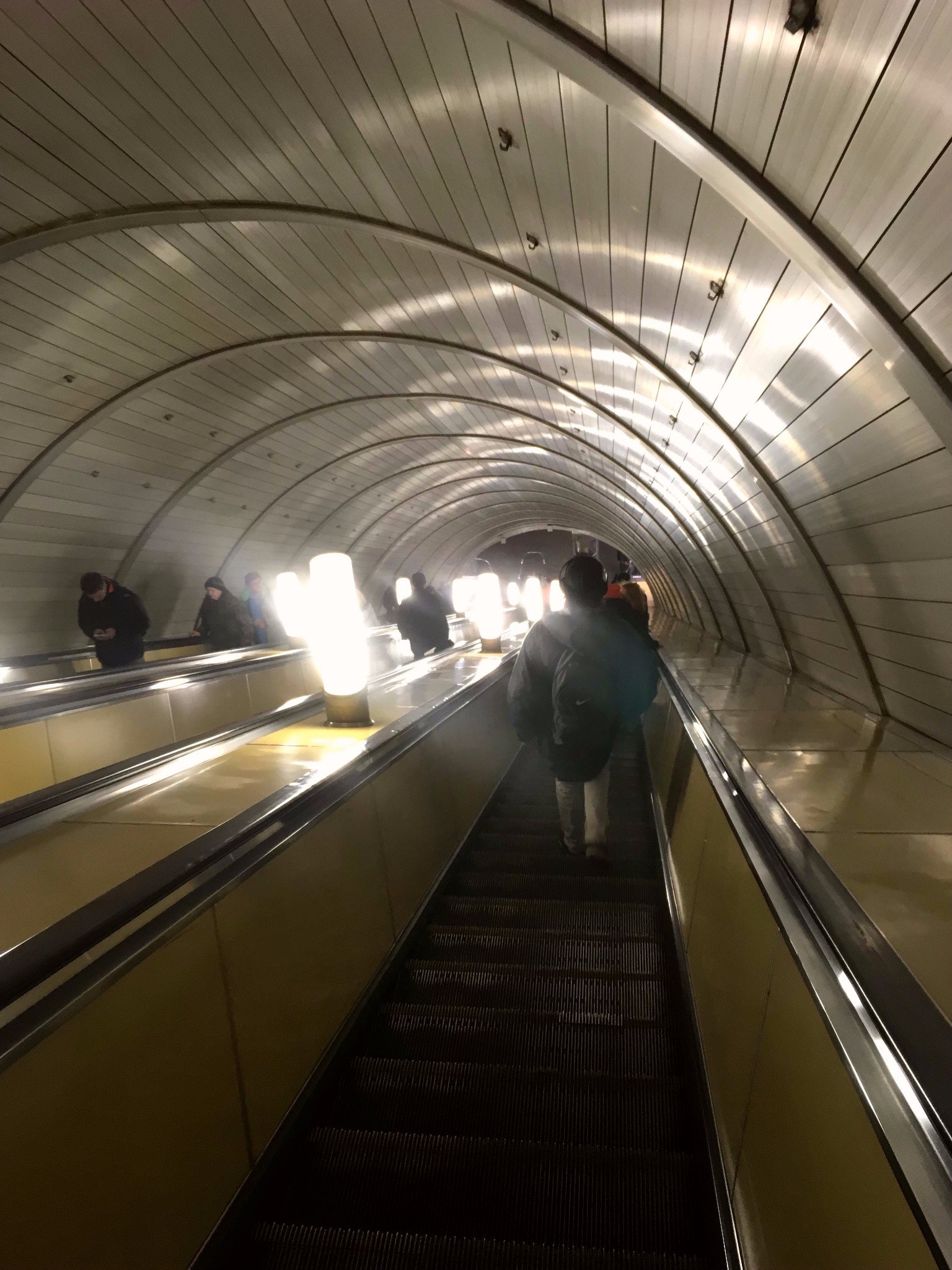 到机场后可以买张机场快线的票,直接坐地铁到白俄罗斯站。一进来果然超级深的地铁站