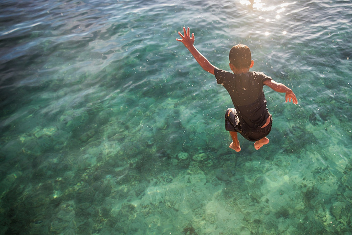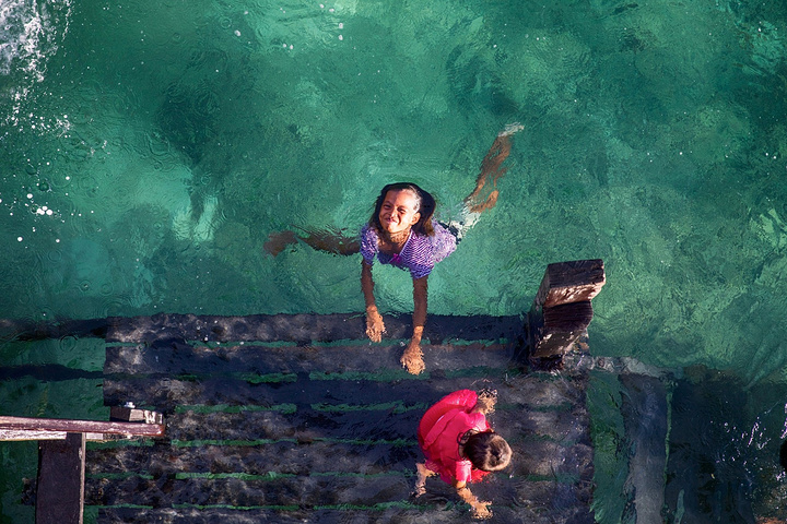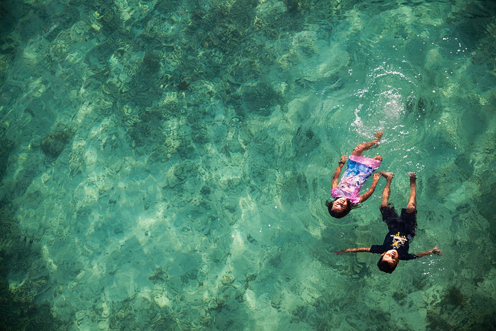 我当时还在想,这孩子这么小会不会游泳,等我爬上高台一看,证明我的担心是多余的,从小在海边长大的孩子水性不要太好。