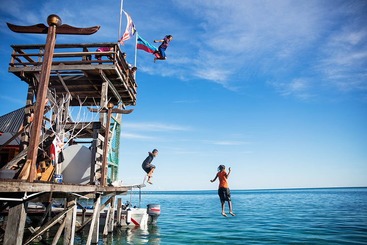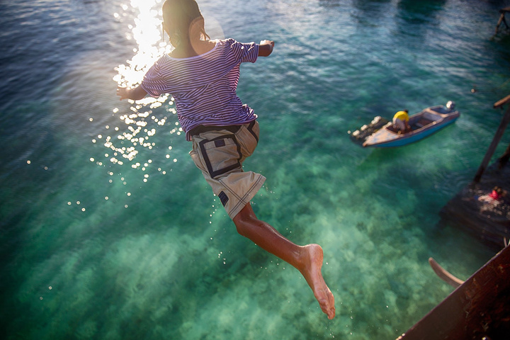马布岛不大,但麻雀虽小,五脏俱全,岛上的居民们可以在岛上的一条商业街买到所有生活的用品,也有专门对游客开放的商店,有各种纪念品。 围着整个岛转了一圈我们回到酒店,发现好多旅客都聚集在酒店的平台上,时不时会传来尖叫声和水花声,我们也好奇的围上去,往平台上一看,一个黑黑的孩子从高台上一跃而下,在人们的惊呼声中一头扎进海水里。
