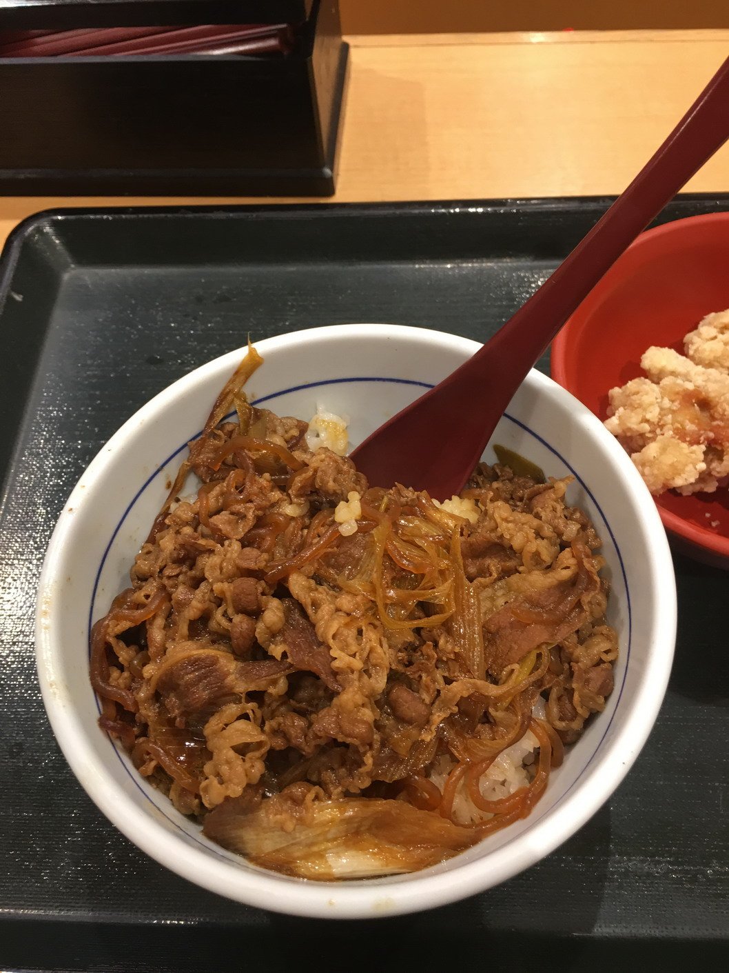 感觉他家的牛肉饭比吉野家入味一些,我点这个是中份,大家可以看出来其实分量比较少了