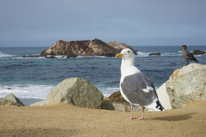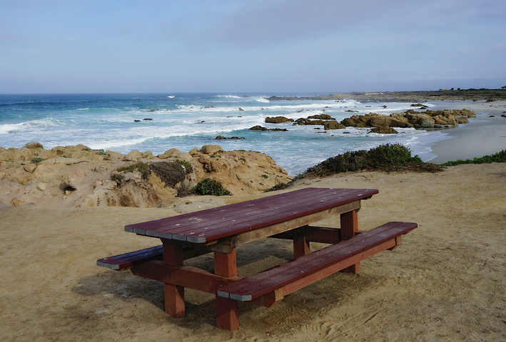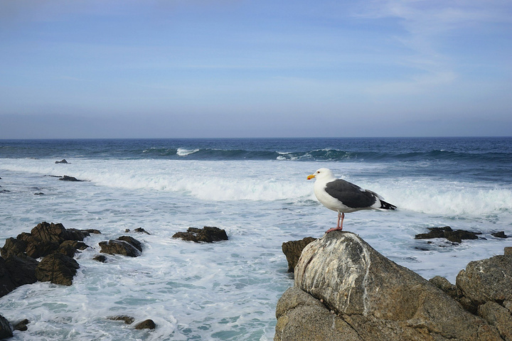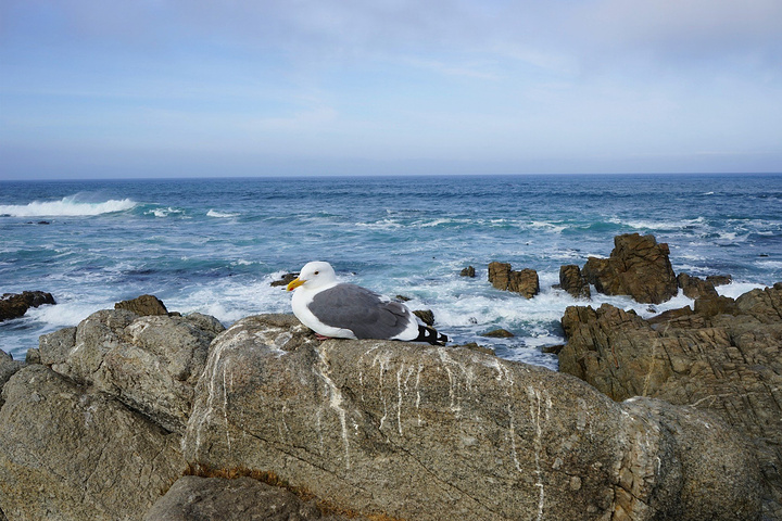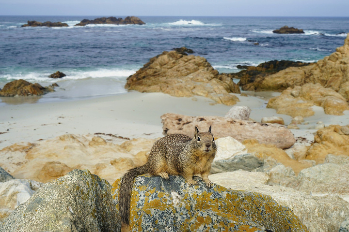 之后便是我们在一号公路上的第一个景点 也许也是最有名的一个 17英里 17miles 顾名思义 就是长度17英里的一条海岸风景公路 因为是私人财产 所以开进去需要付费 一辆车10刀 关于17英里 有人不以为然 觉得整条一号公路都是靠着海岸线的 何必再去一段付费道路呢 也许仅仅是因为有名 不过我觉得存在即合理 出名总有原因 17miles里头的风景说不上是一号公路里最雄壮的 不过里面的几乎整段路都是离海非常近的 而且观景台的密度非常大 里面的小动物特别多 各种豪宅 高夫球场坐落期间 元素还是挺多的 个人觉得这10刀花的并不冤枉 看以前很多人游记里说 导航到17miles并不容易 经常跟着GPS绕圈圈 其实当然不能只导航17miles这么简单 人家是整整20多公里的路呢 它一共有5个出入口 分别是 北入口 900 17 Mile Drive, Pacific Grove, CA 东北入口 2700 Forest Lodge Rd Pebble Beach, CA 东入口 SFB Morse 东南入口 3911 17 Mile Dr Pebble Beach, CA 南入口 3440 Carmel Way Pebble Beach, CA 出发前查一下 哪个入口离自己比较近 然后往那里导就对了 交了钱进入景区之后 也不是立马就到达海边 比如我们 开了将近10分钟才看到海