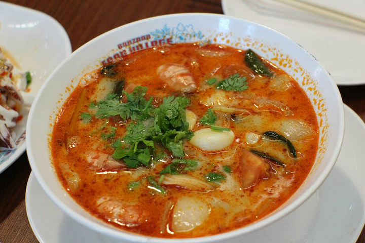 冬阴功汤150B(他会要价200B,你还150B就是了,里面还是会有很多大虾)