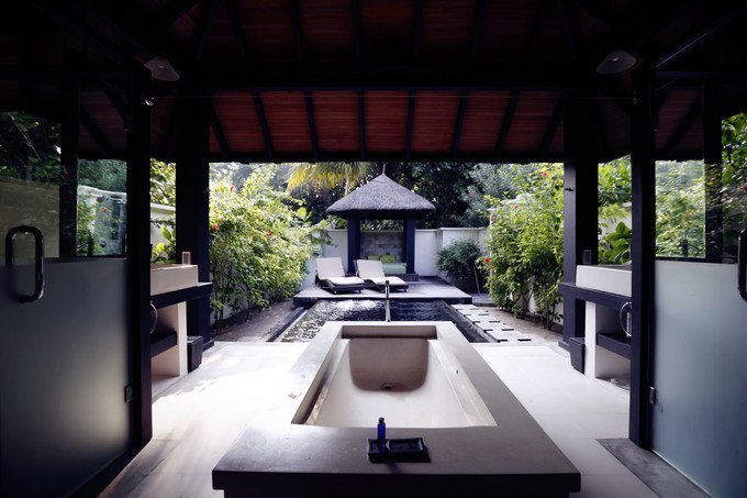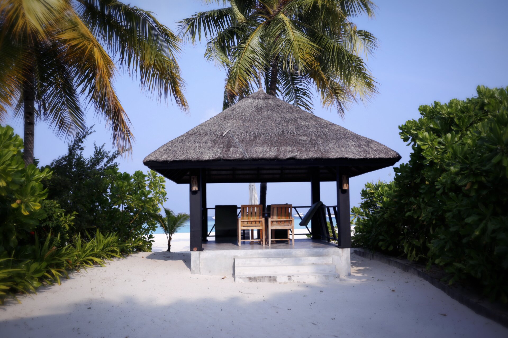 我们前两晚住的是沙屋(沙滩别墅),房间很大,很漂亮。洗澡的地方是露天的哈哈