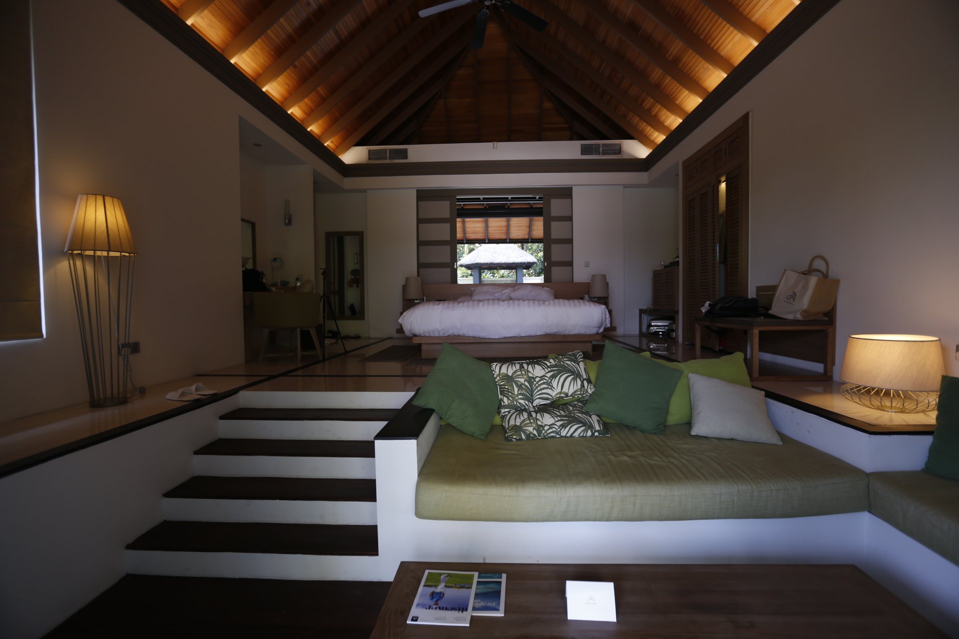 之后,中文服务员跟我们介绍我们的管家,然后和管家一起送我们到房间,并且讲解房间的一些设施,还有岛上的一些娱乐设施和餐厅等等。
