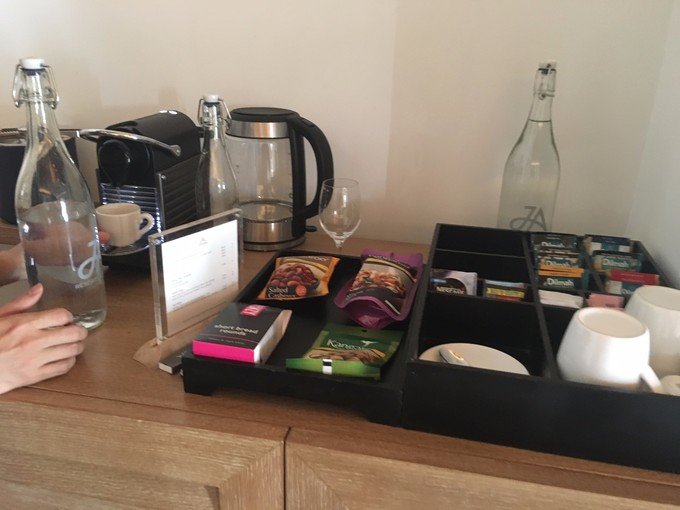 房间里有三瓶水都是免费的,喝完会再给我们加。还有茶包和胶囊咖啡都是免费的~