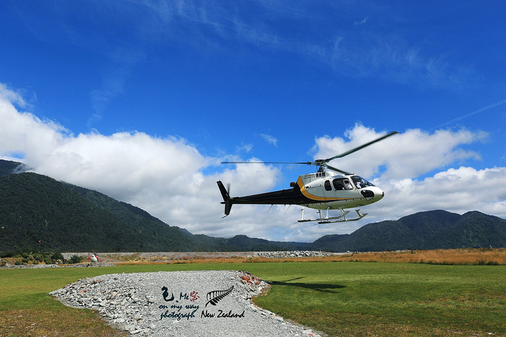 睡了个懒觉起床,今天唯一的活动是下午的直升机冰川徒步,满满的期待呀。不过由于岳母支气管炎还有点不舒服,给她报名的费用也只有浪费,都是提前定好了的,不能临时退款了. 来到集合大厅,每人一个手环,扫描了在电脑上登录相关信息后,向导大概讲解一下,英语虽然撇,但是大部分还是能听懂,只有我翻译给媳妇听了。换上统一的冲锋衣等装备,就出发去坐直升机了。生平第一次坐,师傅手艺不错,坐起也稳当。