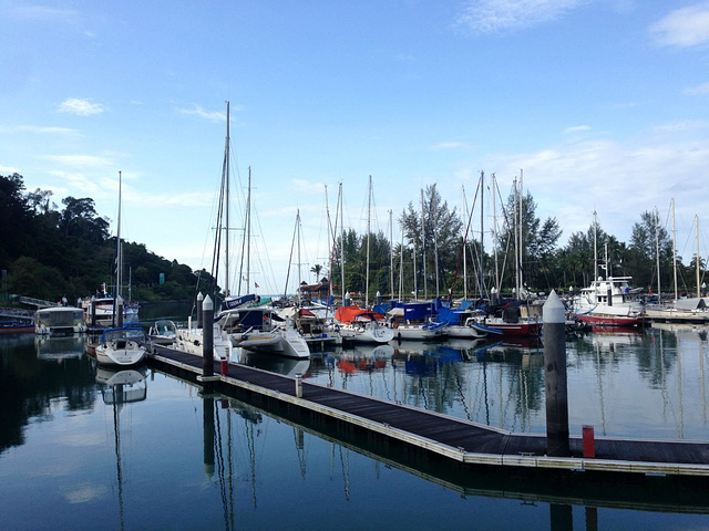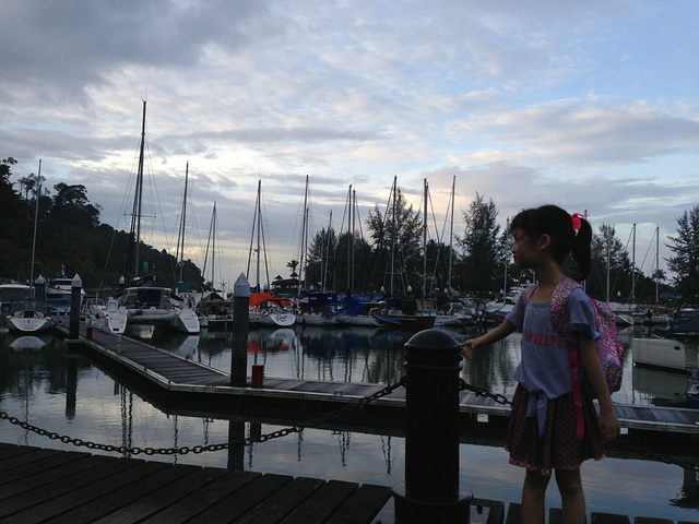 与小黑司机沟通,知道harbour park就是往泰国丽贝岛的码头所在地,第二天一早我们便到达,来到美丽的码头,眼尖的小贝贝便发现栈道下一束束海胆,这人来人往的码头竟然还有海胆!真是暴殄天物!呵呵!