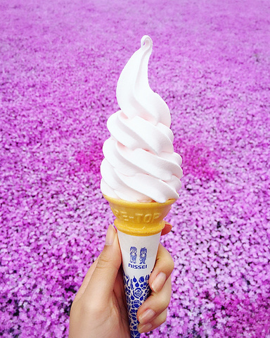 看粉红的花海~尝芝樱口味的冰淇淋❗️❗️