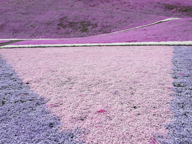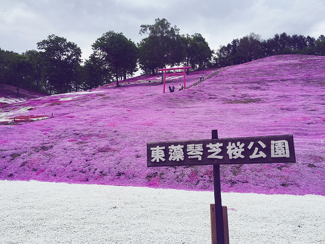 吃饱继续启程,快要到达东藻琴芝樱公园的时候周围已经开始粉红起来了,我们也开始兴奋起来! 当车行驶到公园入口前时,远远已经可以看到公园里面的粉红花海~~在车上的我们都一阵哇哇哇的赞叹声! 千辛万苦各种波折终于来到了「東藻琴芝桜公園」可惜上周日已是满开~今天剩7分开了~但是总算来到了~也算是自己梦寐以求要去的地方之一!满足了