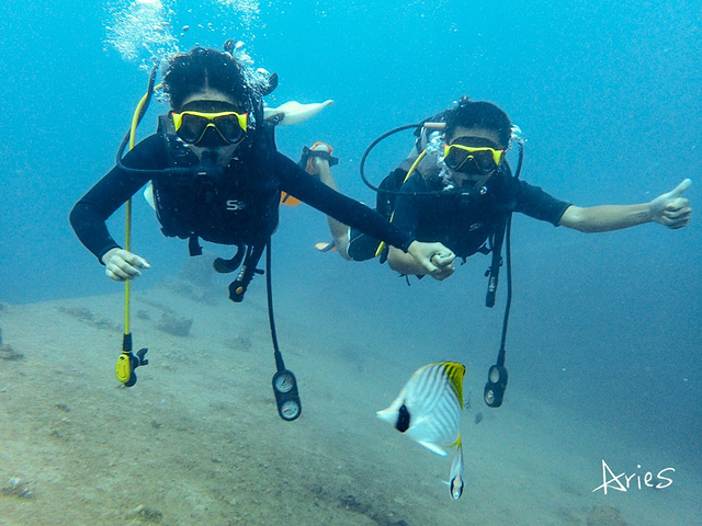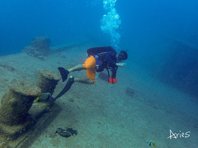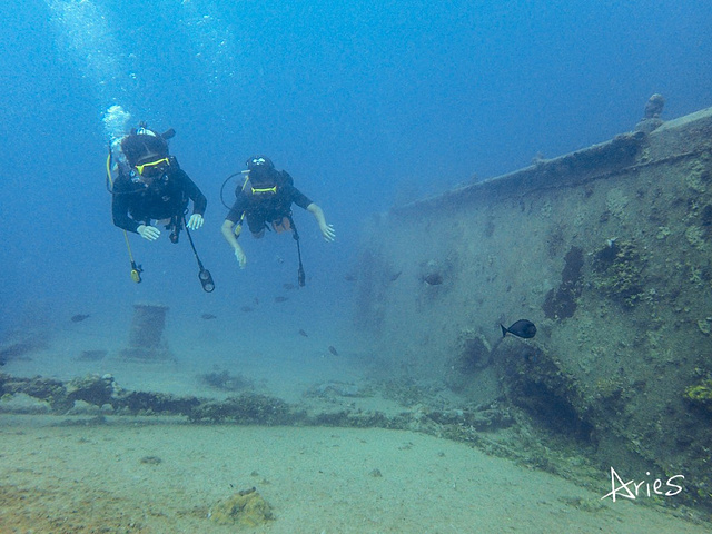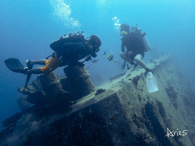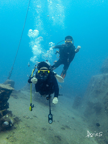 潜水的体验真的太美妙,今后地球的另外70%,亲爱的,我们依然牵手一起探索吧! 小贴士: 1.沉船深潜一次 150美元 \ 人 2.严格来说,需要有AOW的资格证,因为沉船的深度是水下33米左右,那你就能来体验双氧气瓶深潜。我们因为教练而且刚考完OW所以只有一次。 3.回来查资料发现:在阿普拉港水深39.6 米处的德国巡洋舰与18.2米深处的日本Tokai Maru 号,呈正交角度,一起躺在海底。在一个相同的地点,两艘来自两个国家的、代表两场世界大战的沉船,永远凝固在这里。而我潜的则是在直立在海底36.6米深处1900 吨的 Kitsugawa Maru 号。等我考了AOW,下次三艘一起溜达。