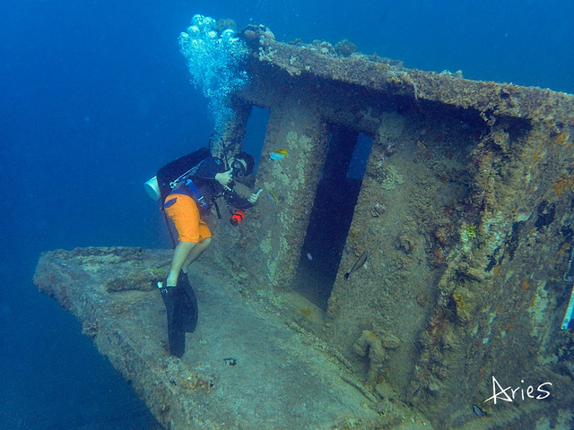 船体已经严重的锈蚀,并布满了各种颜色绚丽的海洋生物,变成一只活着的沉船。