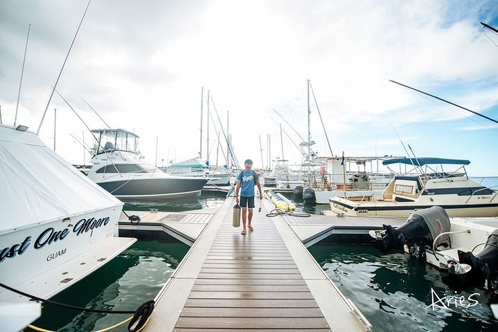 关岛最著名的潜水点有蓝洞、大裂缝,、鲨鱼坑、汉普斯珊瑚礁…当然这些潜点更适合于拥有AOW的潜水员, 因为时间有限我们选择了小强感兴趣的一战二战沉船。 在寂静深海中潜入沉船遗迹是什么样的感觉?超级期待,因为才考了OW,而这里是AOW自潜的范围,所以教练兼保镖大人,亲自携带我俩下水。