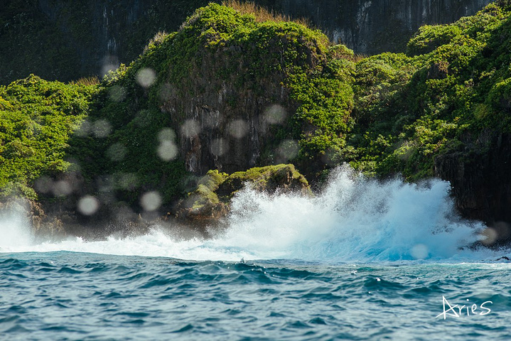 绵长的海岸线上礁石耸立,不时能看见海水侵蚀后留下的巨洞和惊涛拍岸的浪花。