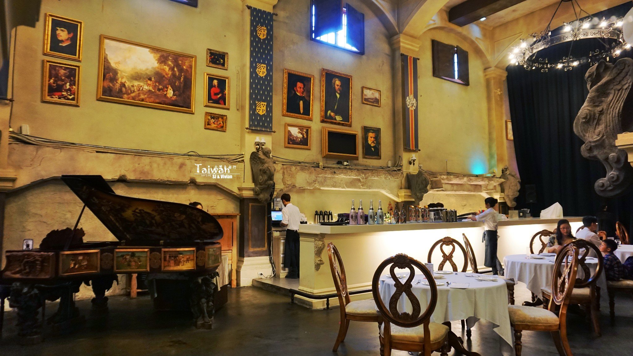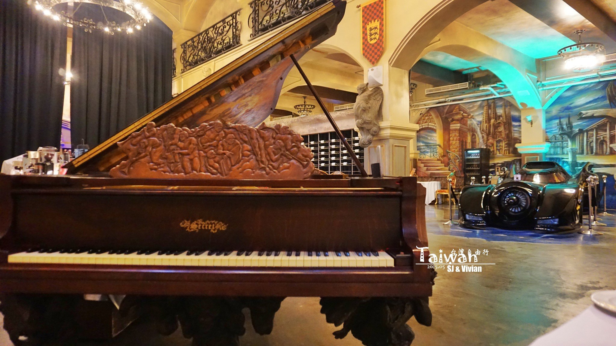 充满巴洛克风格的钢琴和杰伦收藏的蝙蝠车,炫酷至极。用餐环境非常棒!
