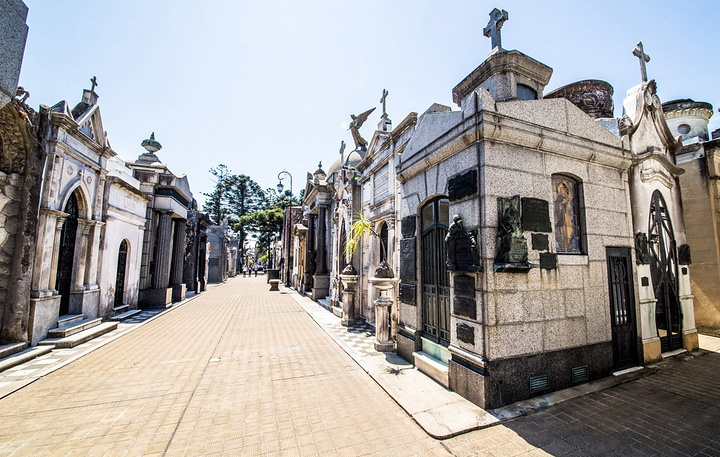 阿根廷的大人物也许出身各不相同,可归宿却大致相同,死后能够进入雷科莱墓地的人绝对在阿根廷算个人物。 这里汇聚了政界大腕、民族英雄、富贵家族...... 甚至墓地里,你可以看见各式欧洲建筑。在阿根廷,人们对于死亡的重视程度远远大于出生,因为在当地人看来出生时什么都不是,只有死亡时人生的全部意义才会全面呈现。 这座墓地位于市中心,面积不算大,墓地的建筑却紧密相挨。甚至那位著名的“贝隆夫人”,也长眠于此。