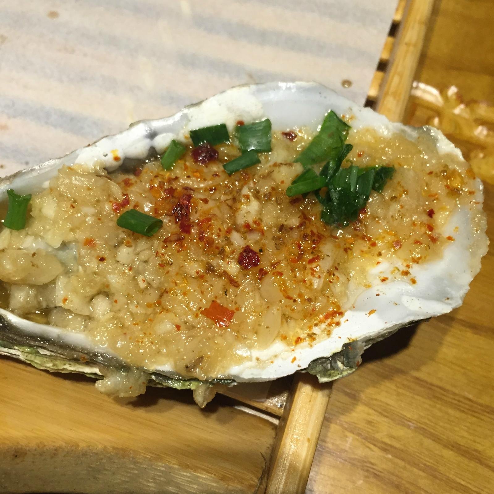 加完班就奔着这里来了,8点多到的,饿得不行,还好没有排很久的队,上菜比平常在路边烧烤摊要快。生蚝强烈推荐,超大个,食材新鲜处理干净,吃了一打没有一丁点沙,佐料放得恰到好处,蒜香搭配着生蚝本来的鲜味,堪称完美。还有手撕鱿鱼,烤得非常软嫩,不会觉得干,味道和口感都很好。三个人吃了400多,不过喝了8瓶白啤,价格比较适中。