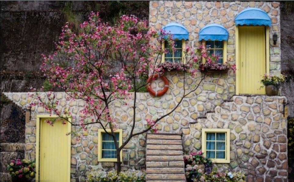 景区里面有湖边餐厅和烧烤场,价格略贵,味道还不错,周边不少装修还蛮有特色的,普遍使用浓郁的色彩,好像来到鼓浪屿,所以这里也聚集了不少来此拍婚纱照和写真的人。