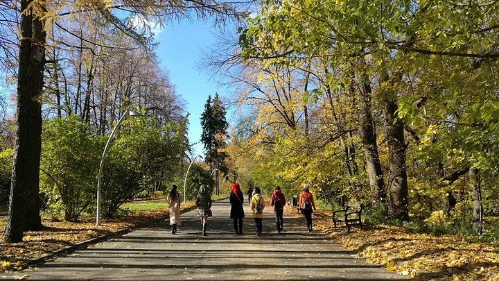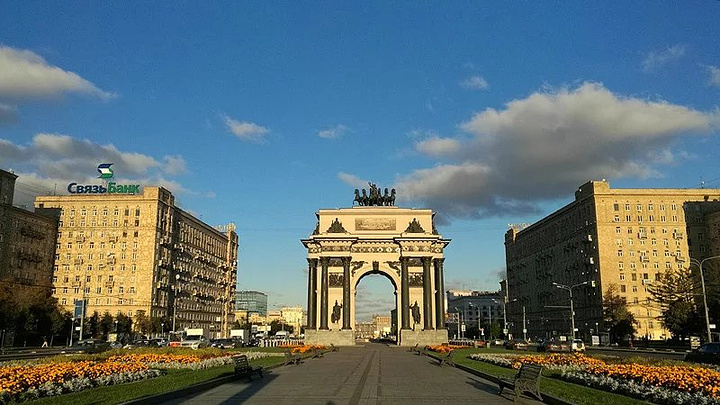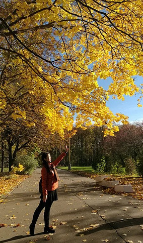 登上麻雀山观景台看看莫斯科全景,斯大林七姐妹之一的莫斯科大学主教学楼在山顶巍然屹立,校园里金色一片。