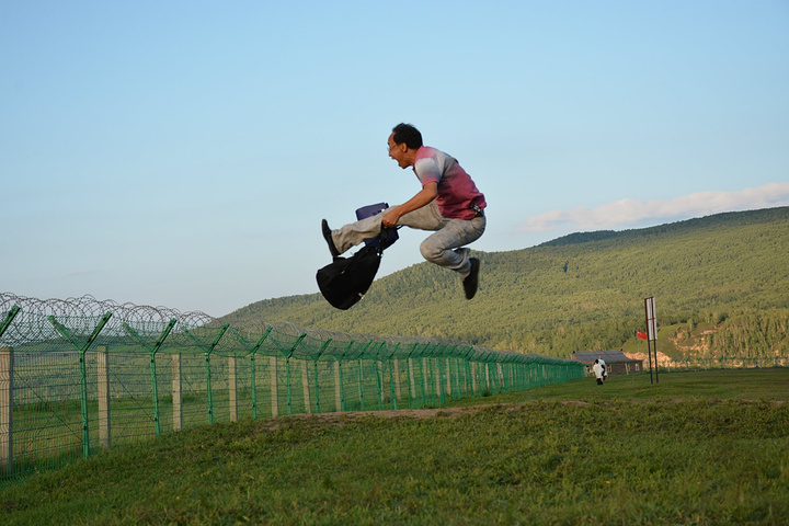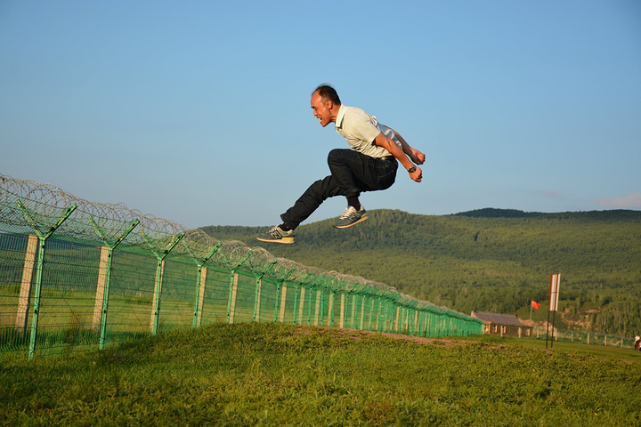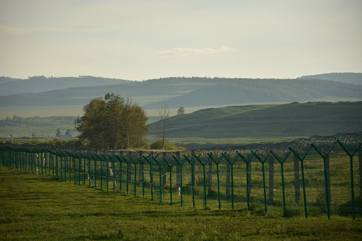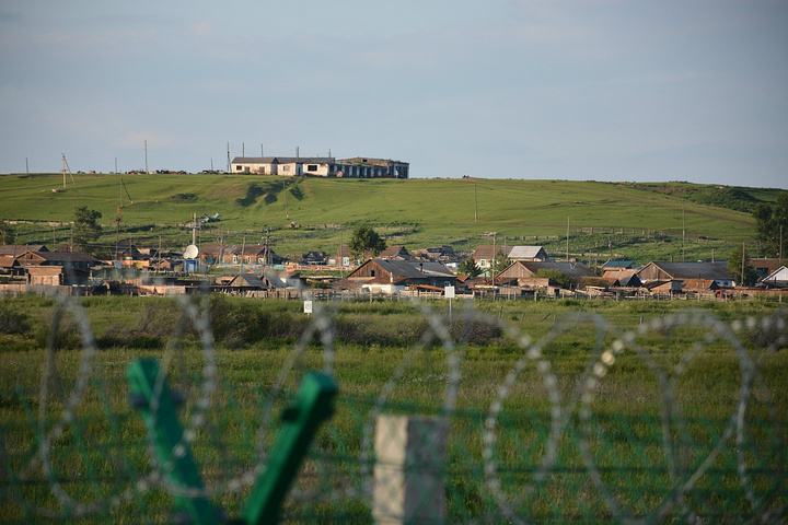 中间的铁丝网将中俄两国分开