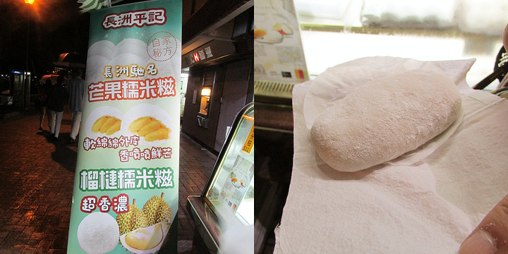 《风雨同行,仙湖公园、香港离岛5天“另类游”》中提到的 长洲平记糯米糍 攻略刚刚吃了恶心的海鲜餐,必须要有甜品中和一下了刚刚吃了恶心的海鲜餐,必须要有甜品中和一下了。推荐长洲平记糯米糍,我们买的是芒果糯米糍(8港币),比我们平常吃的要大一点和长一点,还有里面真的有新鲜的芒果块,入口即溶,甜而不腻。来自游记风雨同行,仙湖公园、香港离岛5天“另类游”