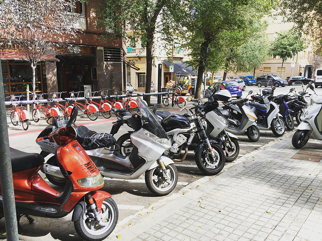 等公交的时候,无意间拍的,西班牙最常见就是大家都喜欢骑摩托车,而且速度飞快,不管男女老少,个个都像赛车手,看到这一排估计你就懂了哈。