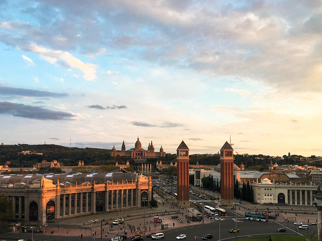 由于我们走的是加泰罗尼亚国家艺术博物馆的后门,直接到达山上,提前欣赏了山上俯瞰城市的view,也许是欧洲城区建设的关系,没有高楼,整个看上去就是空旷。