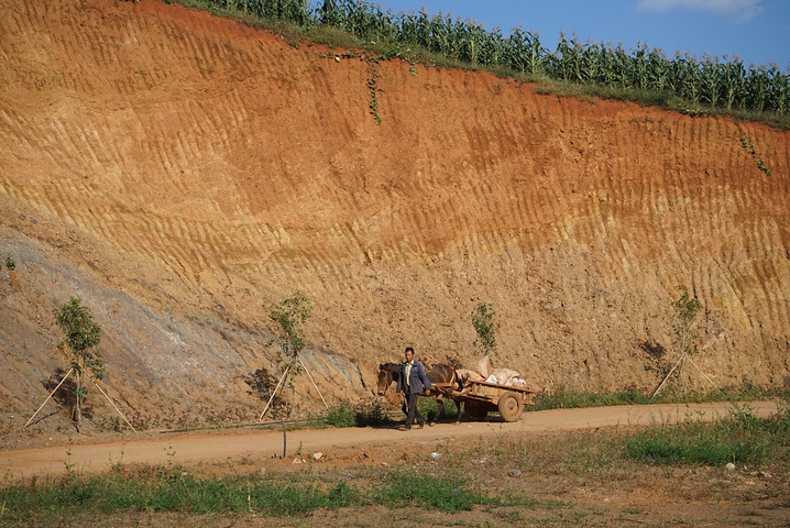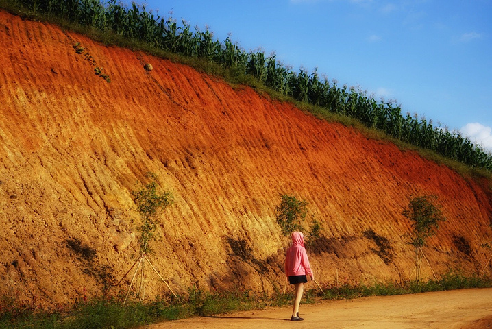 田里还有农作物,红土地没有呈现出来,现在来的不是时候
