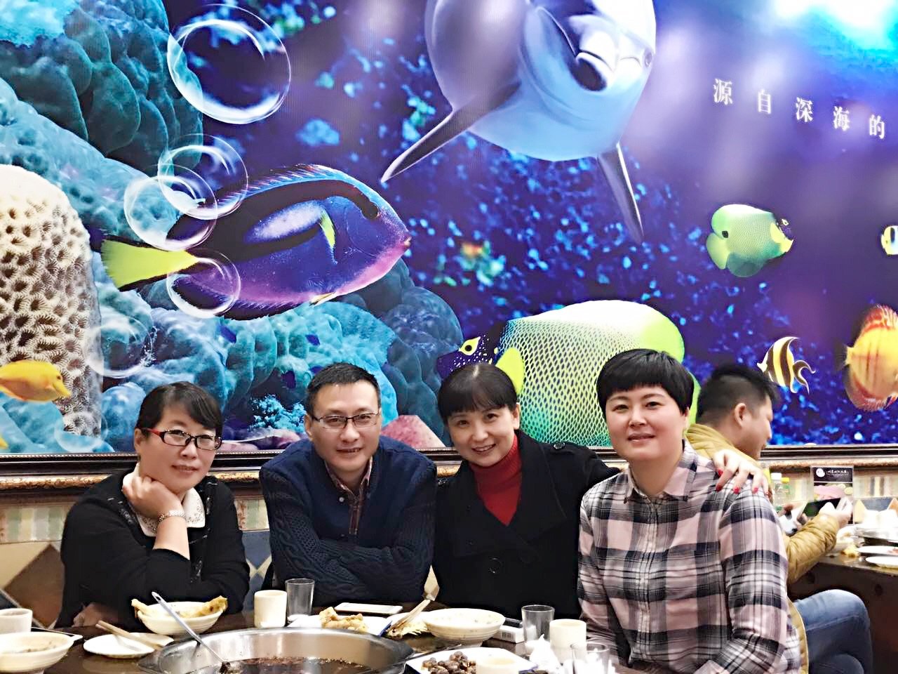 我们四人年轻时,在一个单位上班。后来陆陆续续地离开了原单位。现在又在成都聚在一起。也许是初老了吧,我们不由得回忆起了过去,还当场和其他一些当年的同事通了电话。