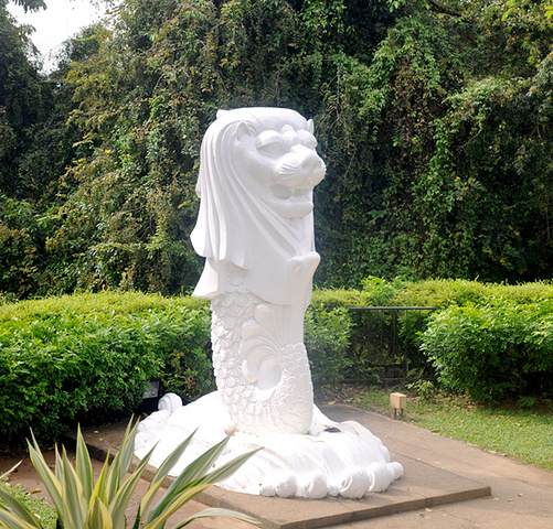 导游告诉我们,花芭山的这个鱼尾狮是宝宝,刚才在鱼尾狮公园里看到的是妈妈,爸爸在圣淘沙名胜世界。 为什么把他们一家三口分开呢?估计小游客大多会提出这个问题。这问题他们的爸爸妈妈肯定回答不出,因为大人心里也在疑问啊。
