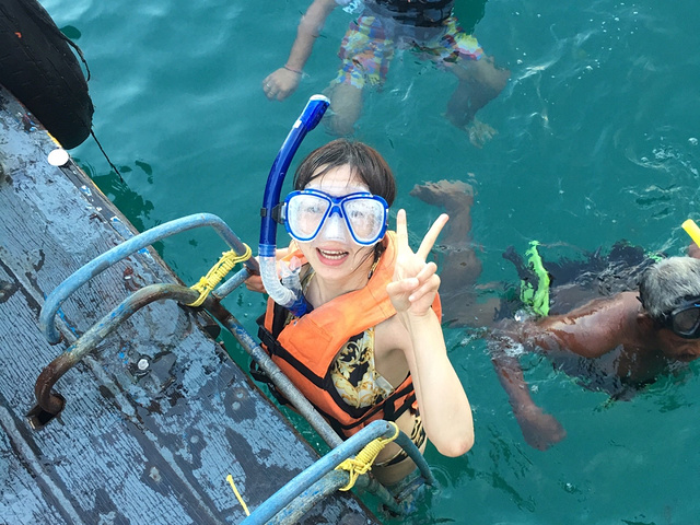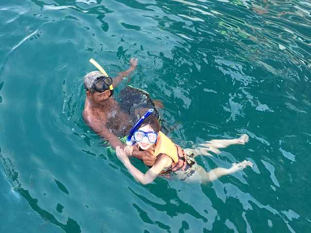 浮潜了,老婆不会游泳,只能让工作人员带着游