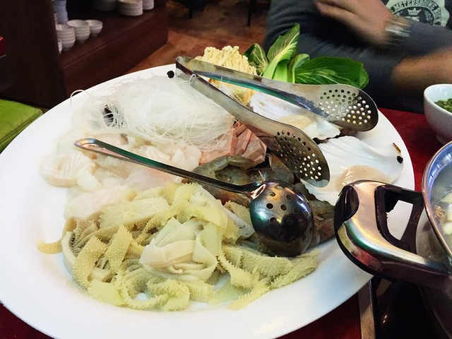 话说这家火锅味道还是很正宗的,特别是牛肉、百叶这些都很好,肉切的厚,但不柴