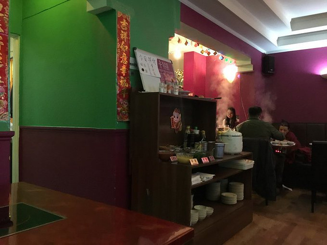 买完围巾雪终于小一些了,在微信朋友圈发现有个朋友居然也在英国旅行,她跟我们强烈推荐了这家四川火锅。饥寒交迫的,马上开车前往。 话说这家火锅味道还是很正宗的,特别是牛肉、百叶这些都很好,肉切的厚,但不柴。最关键,火锅是自助式的,吃多少都行。我俩放开吃,在北京吃一顿火锅也得3/4百了,在爱丁堡吃上这火锅、这价格,真的是性价比非常高了。 当我微信之后,原来格拉斯哥认识的留学生MM,也知道这家店。她在爱丁堡学习半年的时候,也来过。 不管怎么说,要是自由行来爱丁堡,吃不习惯洋餐,就来顿火锅吧!