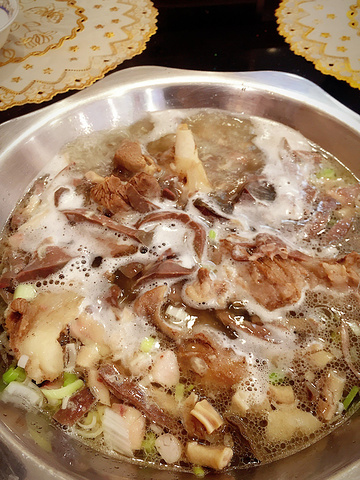 下午2点50到达宾馆,稍事休整,把昨天便宜的大西瓜开了,不甜,在大众点评搜了评价颇好的一招鲜全羊铺,电话询问可以带狗,便直奔而去。老板人热情实在的很,耐心介绍每一种菜品的特色和口味,不捆绑销售不强卖菜品。因为只有三个人没有原则评价最佳的烤羊排,但羊排3斤只卖108,很良心啊,下次有机会再品尝。要了羊汤手把肉,沙葱鸡蛋两个特色菜,都非常满意,尤其是羊汤非常鲜,我们路上剩了点发面饼泡到了汤里简直太美味了!建议老板增加个馍馍搭配这道菜卖~全家人都吃的很满足 小店布置的具有浓郁的内蒙特色,用餐环境不错,旺宝依然不吵不闹,乖乖的等着