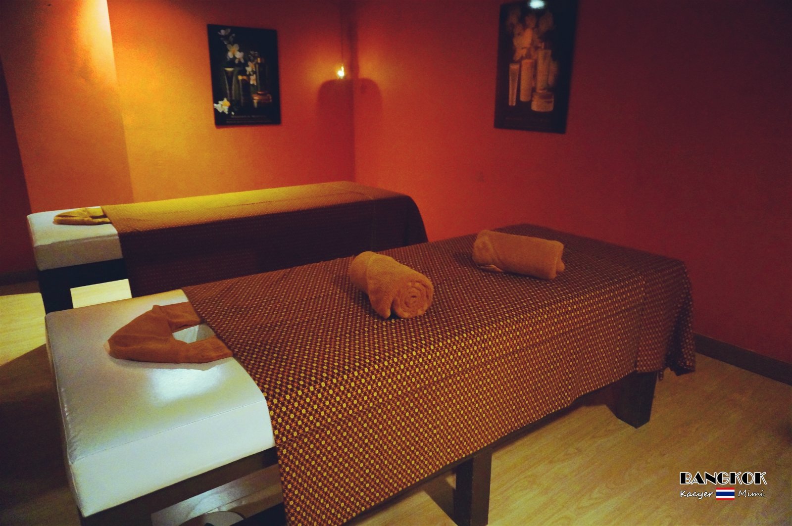 因为是上午,来按摩的人不多,不预约就有位子,但被告知没有menu上最便宜的泰式马杀鸡(不知道是不是宰客行为),于是选择了90分钟的精油按摩,一个双人套房,比预想中贵了两倍,一个人300RMB左右,这下不愁花不完钱了。。。