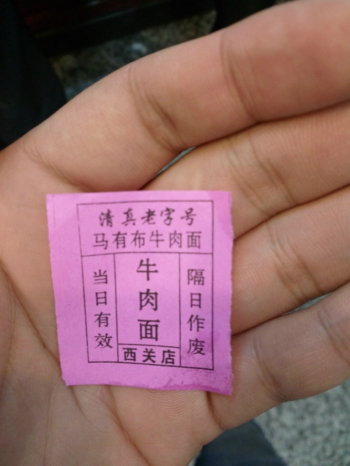 点好餐之后会给一个小票,自己拿到最里面的窗口,交给里面的厨师,然后等着取面就可以了。不过一定得记好自己的顺序,因为没有排号,所以有些游客就插队去端面了。
