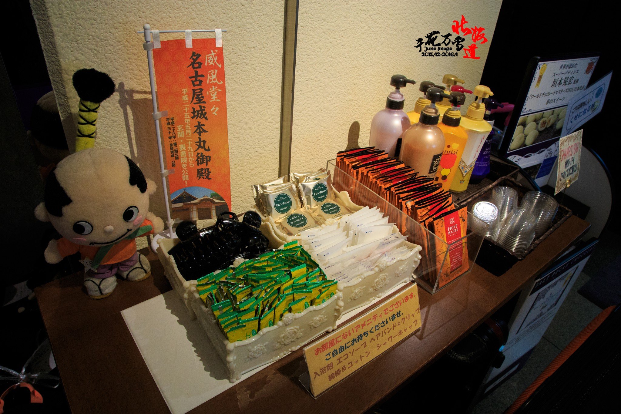 酒店有个特色服务。到了晚上,前台会摆出不同系列的洗发水、护发素、浴盐、洁面皂什么的,供大家选择。大家可以用小杯子装好带回房间(房间内的洗浴用品是花王的),又环保又人性化。对了,图片左下角那个不是茶包是汤包,用开水一冲就是土豆汤,作为冬天的夜宵真心不错。