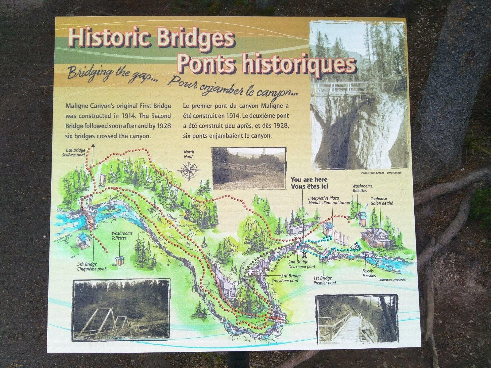 Maligne Canyon玛琳峡谷景区的步道很长,全程约四公里。我们从2号桥入,到1号桥,再去3号桥4号桥后就返回。不到1小时就可以看到峡谷最精彩部分了。