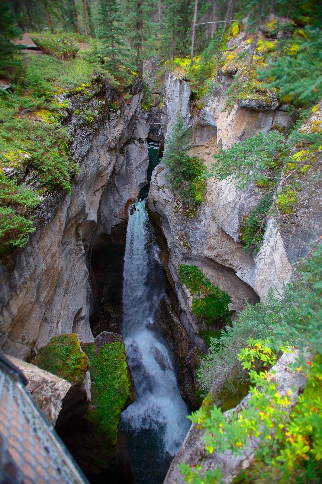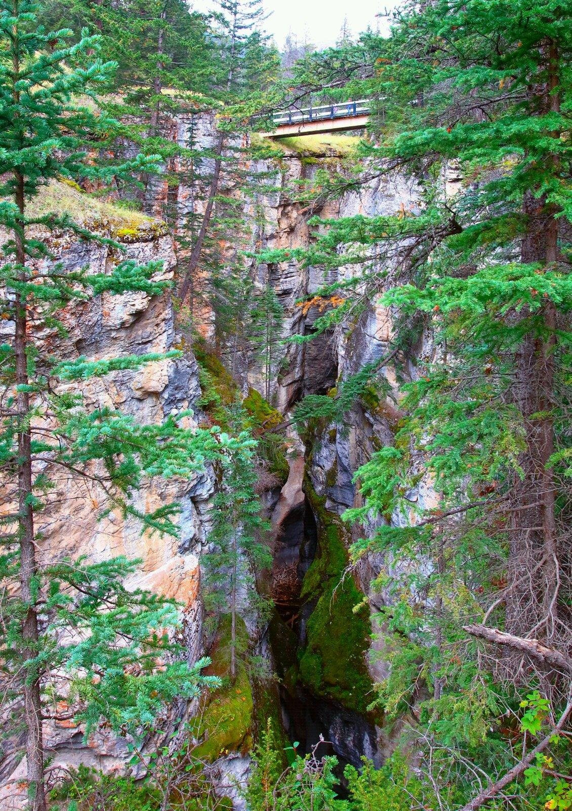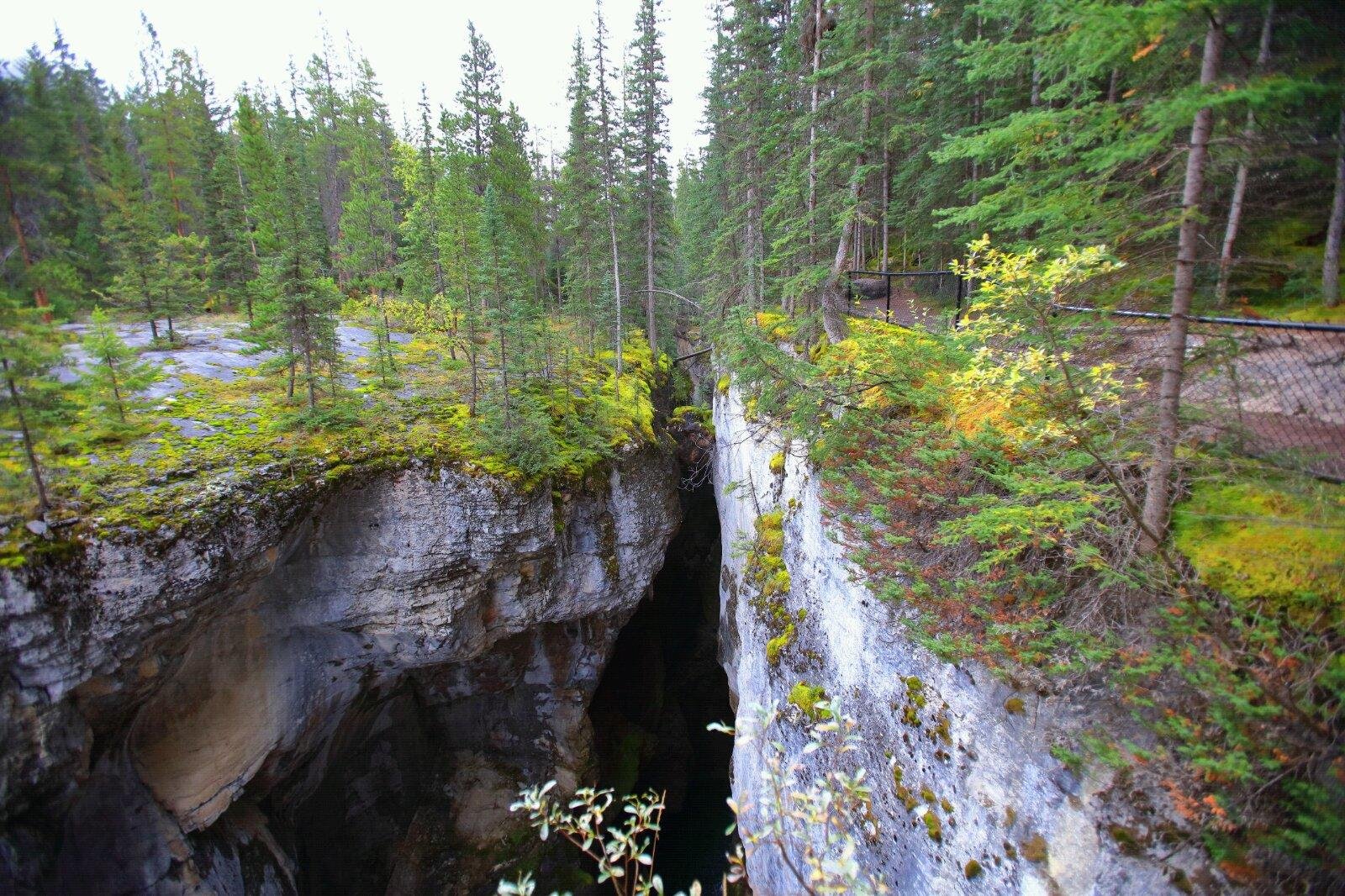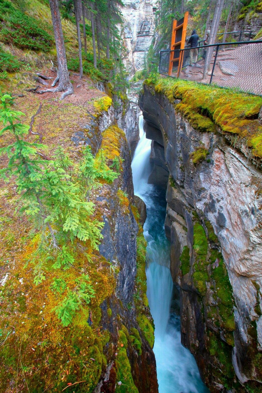 Maligne Canyon玛琳峡谷是一个典型的喀斯特地貌,弯曲幽深的峡谷,峡谷两侧多为垂直的峭壁,窄的地方仅几米宽,因为落差很大,水流湍急,夹杂十多个瀑布,整个山谷水声轰鸣,令人心惊胆颤。是Jasper贾斯帕国家公园的必去之地。