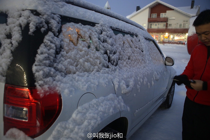 然而滑完去开车,不出所料大白又被“化妆”了……某人又要开始努力的铲雪