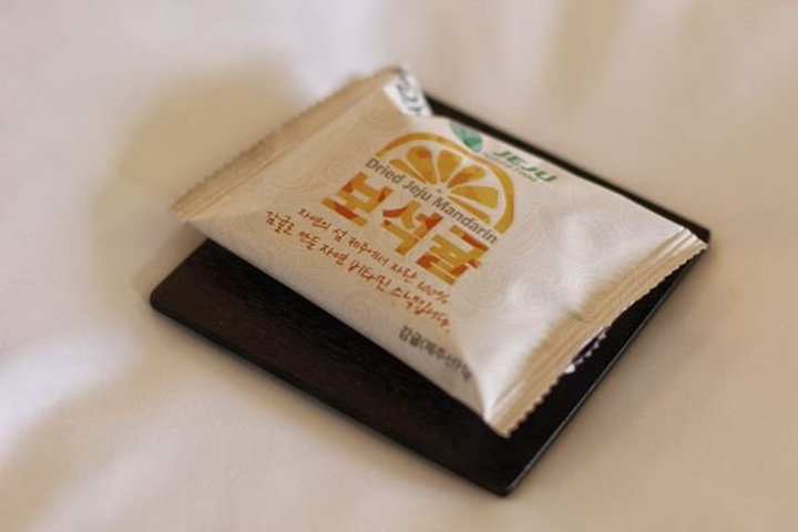 作为吃货的我们当然不能错过摆放在房间内的小零食,这也是给我们的一份小小见面礼,橘子饼和巧克力