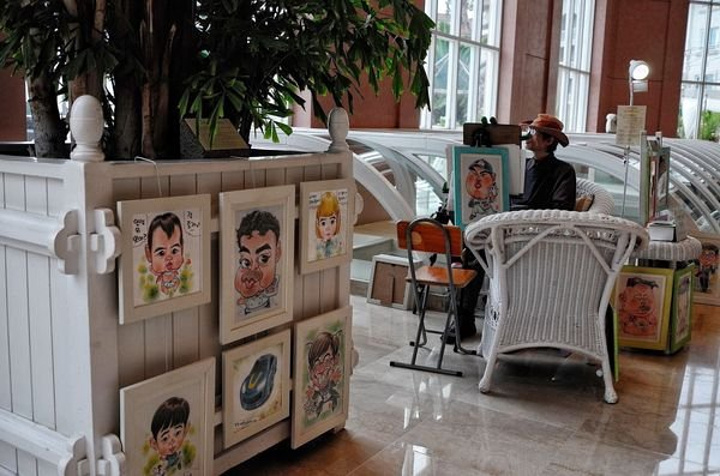 楼梯的劲头是一个画画的小摊位,有缘人坐下付款,等待不多时就可以拿走属于自己的Q版画像